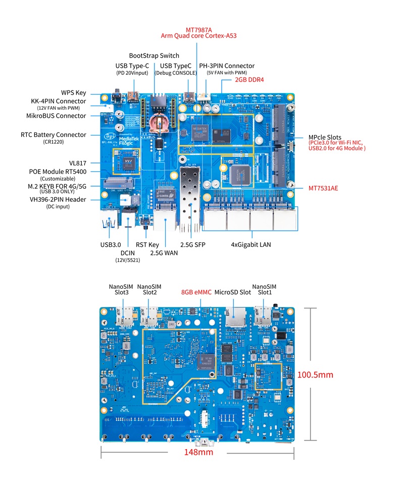 联发科(MediaTek) MT7987A Quad-core Arm Cortex-A53 |